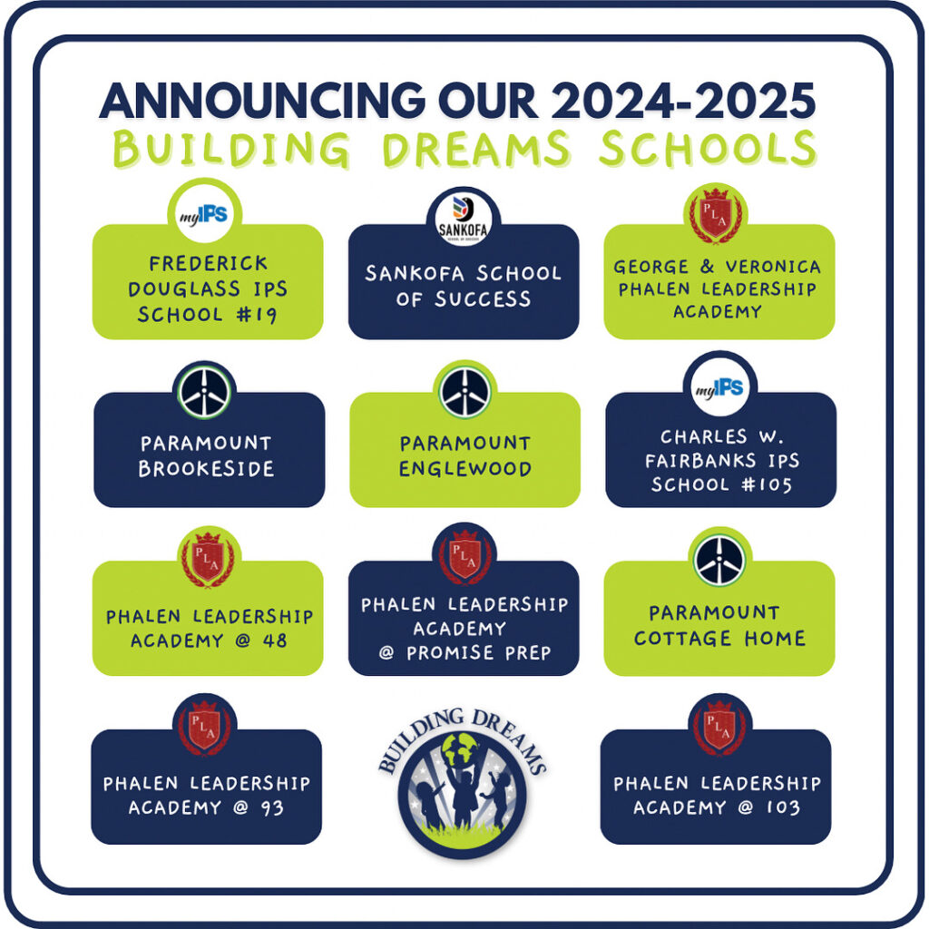 We are thrilled to announce our 2024 – 2025 Building Dreams Schools. Our Building Dreams program is dedicated to fostering educational achievement and overall success in life. This is achieved by helping students develop the social and emotional qualities needed to be successful.