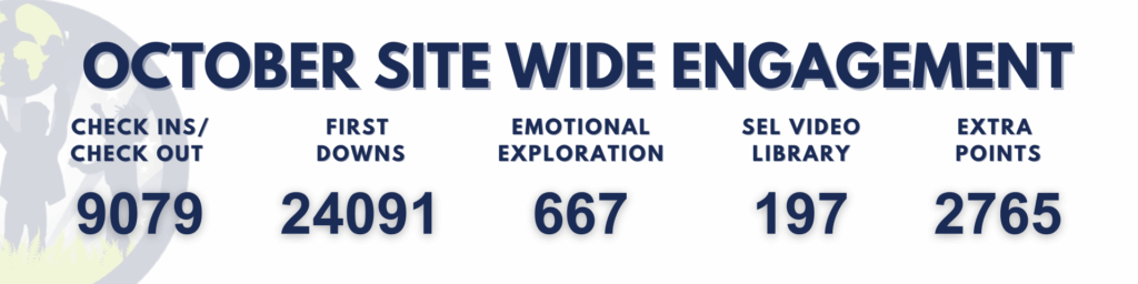 The Building Dreams Engagement Report provides insight into the volume of student and educator engagement with Building Dreams resources over the month of October. Engagement with Building Dreams empowers students and educators to build healthy relationships through active reinforcement of positive wellness and relationships skills that strengthen school attendance and peer relationships.