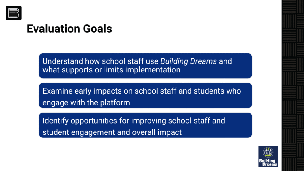 Over the next two months we plan to share pieces of the final report with our network via this newsletter and social media, so stay tuned for more information related to the impact of Building Dreams.